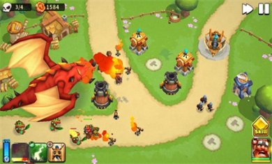 接着进入关卡,由于前期存在的新手教程,基本的防御介绍和英雄介绍,会让你提前有个了解,但伴随着关卡的推进,你能从每个关卡中获知剧情的跌宕起伏,无疑为游戏特色增加的鲜明亮点,在这里你可以布置防御塔,也能通过消灭小怪来进行防御塔的升级、强化,同时还能控制英雄的自由移动,布置合理的战术守卫家园,酷炫的技能特效,为游戏本身起到的积极的推动作痛,使得玩家能够在视觉上感受强烈冲击。