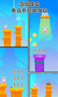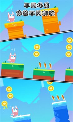 1. 玩家可以控制小兔子,不断收集胡萝卜,并挑战丰富的游戏关卡。