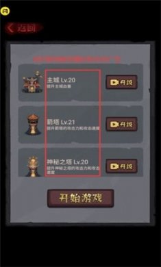 4.【升级】这里的每一个塔防和主城,甚至是黄金矿工和伐木工人都可以升级,这需要消耗资源。