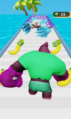 1、玩家需要控制猿猴奔跑,通过闪避不同的障碍物,收集足够的香蕉,才能开启更多游戏内容。
