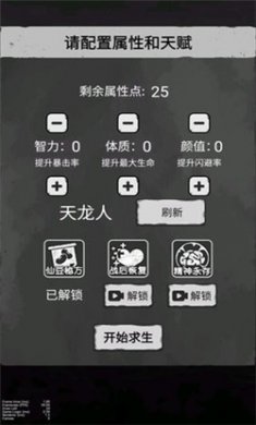 在游戏初期,玩家将可以去选择属性点和天赋,接着需要以这个身份进入末世进行生存冒险,游戏中存在各种危险和机遇,这十分考验每一位玩家的选择,而且每个关卡都有隐藏的道具,这些道具有的可以快速提升角色的战斗力,通过关卡既可以获奖励,有的则是能够恢复玩家的各种状态,丰富精彩的操作方式,体验轻松欢乐的硬核操作,相信一定可以给玩家一场不一样的冒险生存之旅。