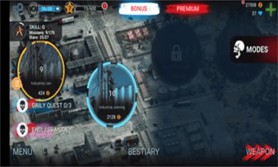 2、城市人口密集,代表这里的危险程度,丧尸出没,其中高级boss出现的概率高;