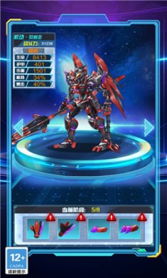3、海量关卡,机甲攻击力更高但是会带来很多奖励,快速闯关能让你快速收集各种材料;