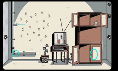 说是一幢房子但其实游戏中只出现了四面为不同场景的一个房间而已 这种空间有限的解谜游戏通常都有无数个锁着的柜子 你需要先找到线索破解隐藏的密码 或者解开机关找到钥匙 才能拿到关键道具 这个游戏也不例外 除了柜子 电视机 管道 墙纸 窗帘 甚至老鼠洞都被加以利用 绝不浪费一处布景