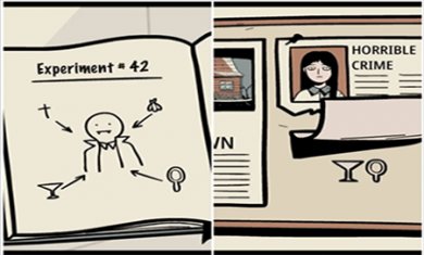 你终于扳下机关打开了大门 墙上却赫然出现一行红字: 你不应该出去 将信将疑的你拉开门走了出去 却看见地上飘来一张剪报 上面正是你的照片 一瞬间 遗失的记忆重新涌现…