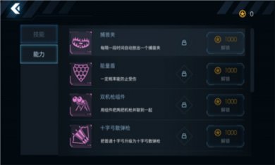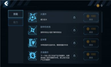 2、这里分别由游戏的技能和能力,玩家都是可以通过金币解锁的;
