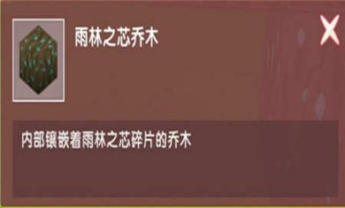 3、雨林之芯乔木:一般情况下破坏后的掉落物为雨林之芯碎片,雨林之芯碎片是晶莹的稀有晶体。