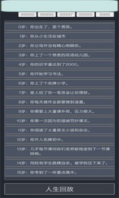 6、最后去世后可以查看人生总结选择再次重开。