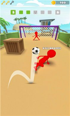 1、操作方式:游戏采用触屏操作,玩家通过滑动屏幕控制火柴人球员移动、传球、射门等动作。