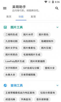 3、图片工具二维码生成、图片水印、图片选色、九方格切割、图片像素化;