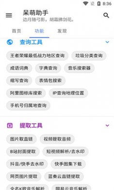 4、查询工具垃圾分类查询、成语词典、字典查询、音乐搜索器、缩写查询;