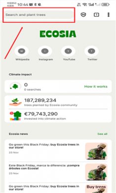 3.使用Ecosia浏览器,每次搜索都会有一定比例的搜索收入被用于植树,让用户的每一次搜索都变得有意义。