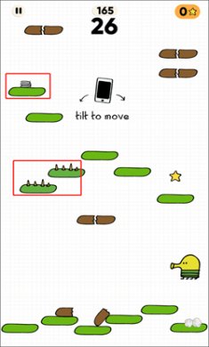 3、摇动手机以控制角色的跳跃和移动方向,并保持在线跳跃,玩家必须掌握自己的跳跃节奏,上面的平台是固定的,但位置设置是随机的。