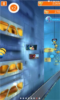 4、另外,在“小黄人赛跑”模式中,撞到障碍物也不会 GAME OVER,但会大幅减速,让你落后其他小黄人,千万要注意哦!只有夺得“小黄人赛跑”的终极宝座,才能成为史上最邪恶的坏蛋!你准备好了吗?