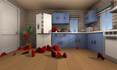 2、左右箭头可以切换房间内的任意场景,先去厨房,点击左下角的商店购物车按钮,进入冰箱内为胡安购买食物。