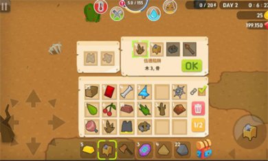最主要的是先把武器做出来,点击左右按钮可以切换到武器制作栏,可以用五个木头来制作木剑,这样夜晚遇到邪恶生物也有自保能力,当然还可以制作木斧、木镐,这些都是前期必备的物资,有了这些,挖矿或者砍树都能更快。